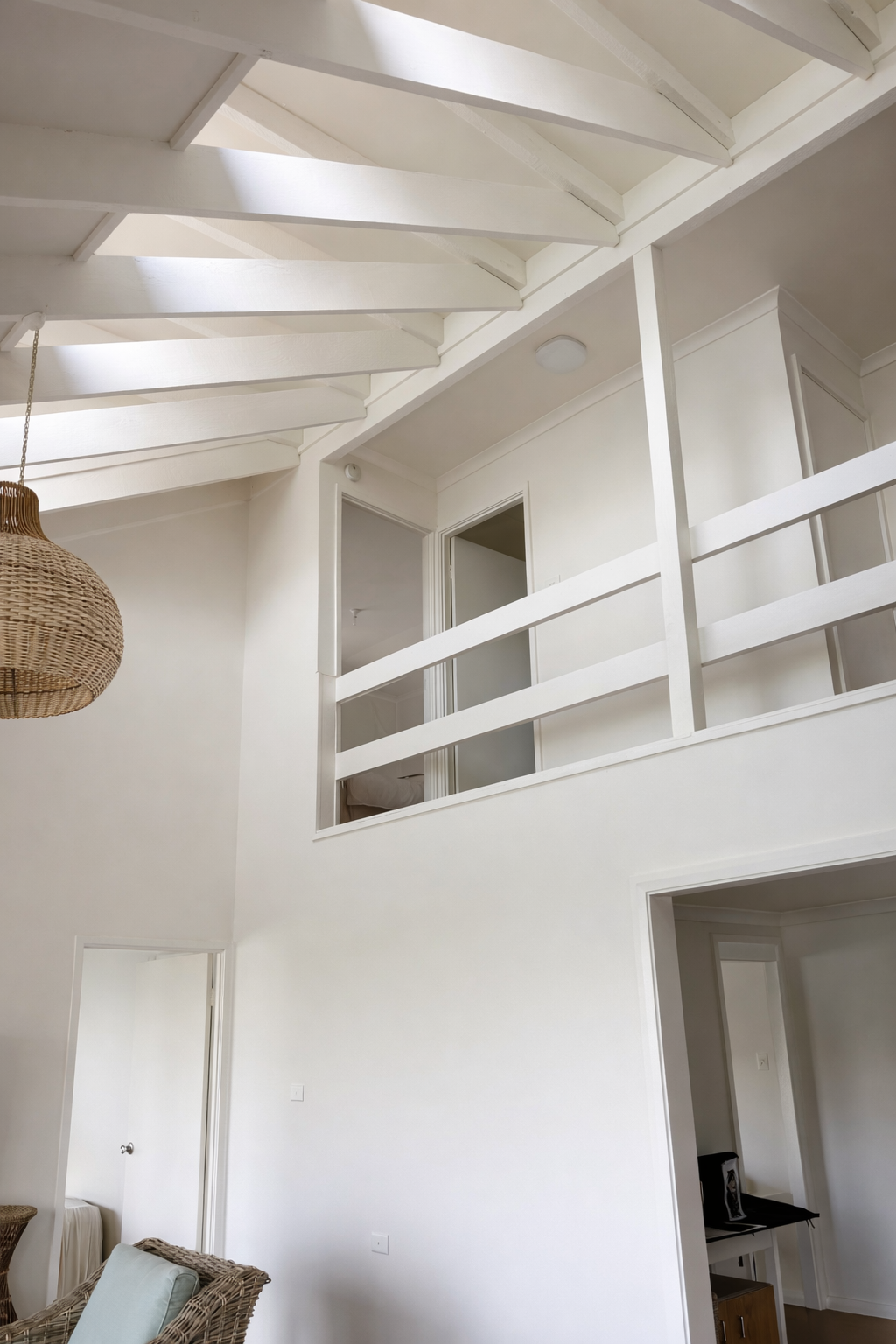 Bright, clean ceiling and cornice painting delivered with crisp cut-ins and a flawless white finish.